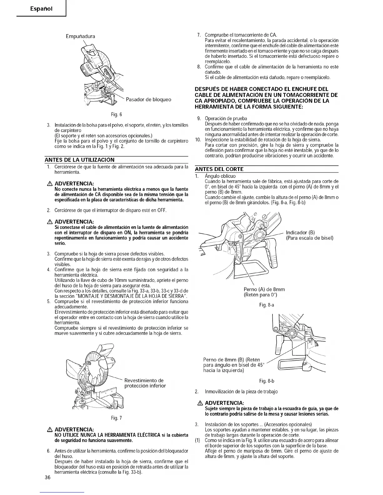 Despues de haber instalado la ho,ja de sierra, confirme que el