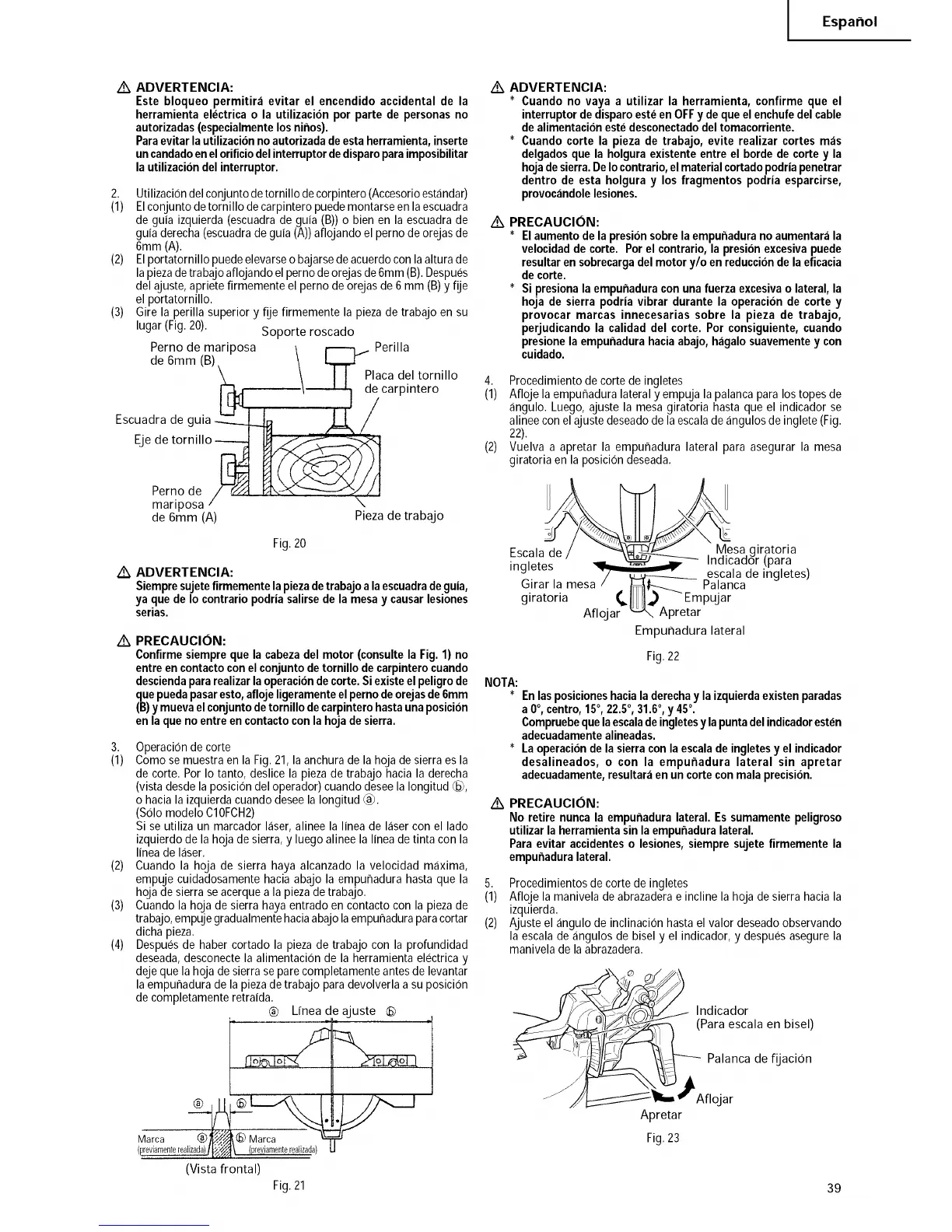 alinee con el ajuste deseado de la escala de angulos de inglete (Fig.