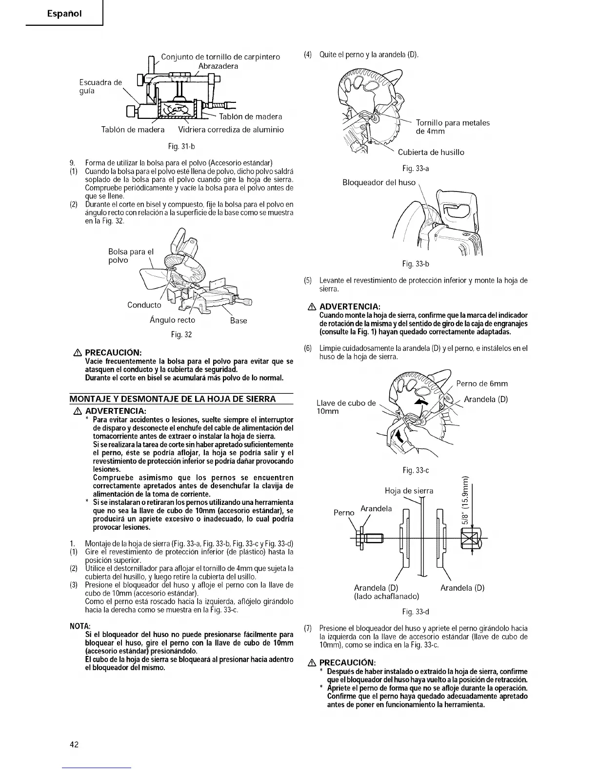 1. Montajede lahojadesierra(Fig.33-a,Fig.33-b,Fig.33-cy Fig.33-d)