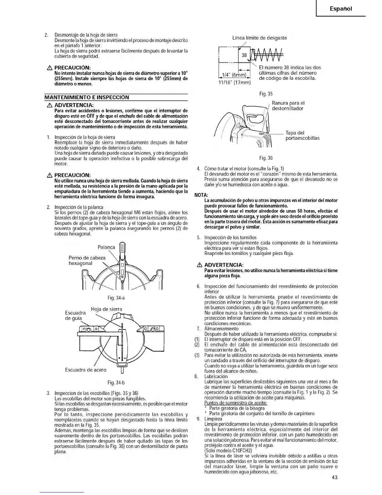 Inspeccion de las escobillas (Figs. 35 y 36)