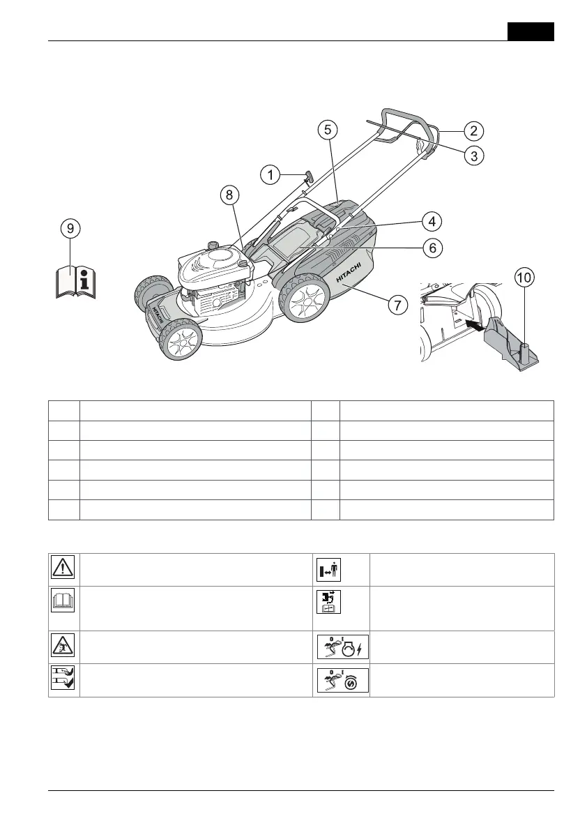 1 Cabo de arranque 7 Cesto de recolha de relva