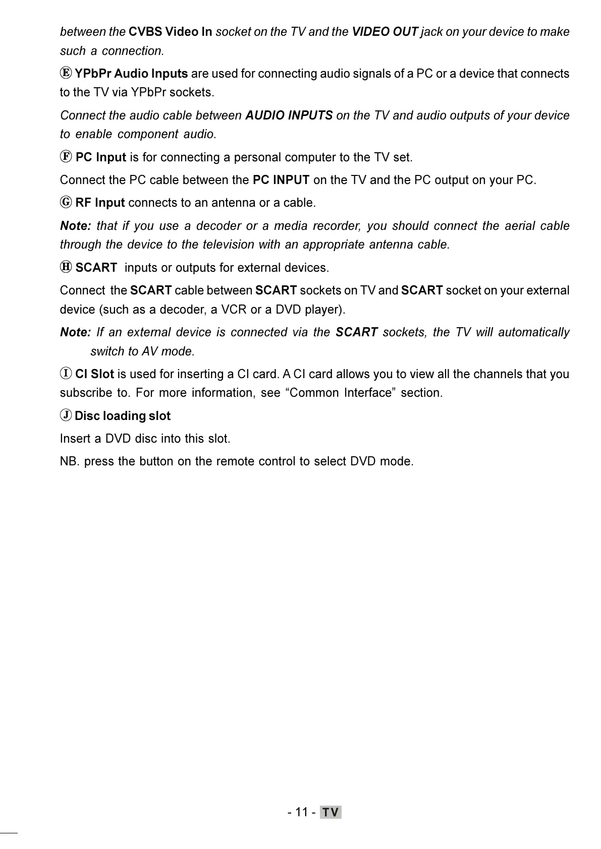 Note: If an external device is connected via the SCART sockets, the TV will automatically