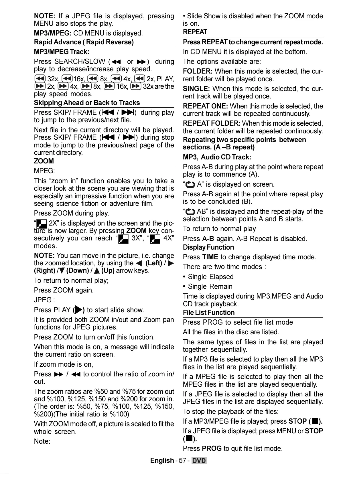If a MP3/MPEG file is played; press STOP (