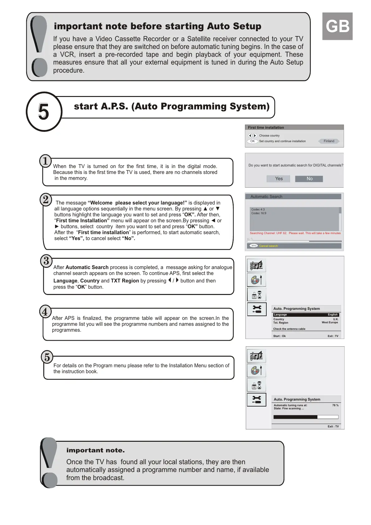 please ensure that they are switched on before automatic tuning begins. In the case of