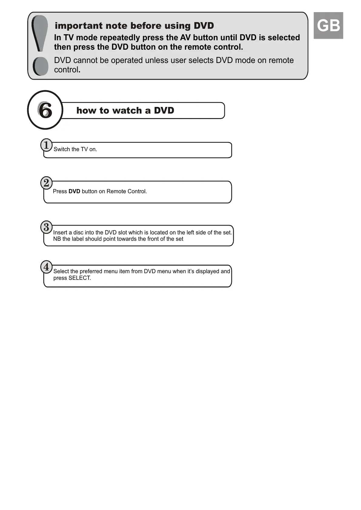 In TV mode repeatedly press the AV button until DVD is selected