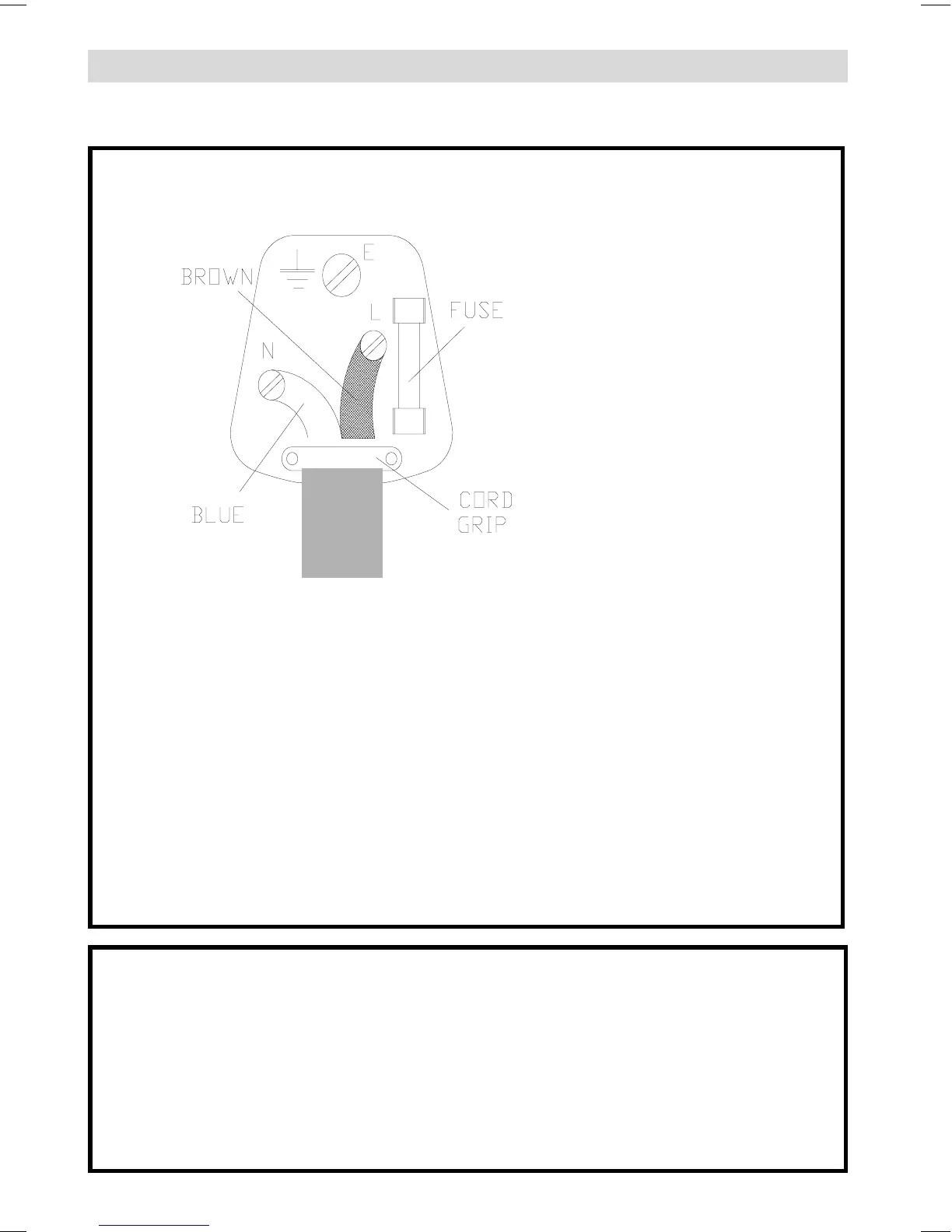 If a 13 Amp (BS 1363) Plug is used a 5 Amp Fuse must be fitted, or if any other type of