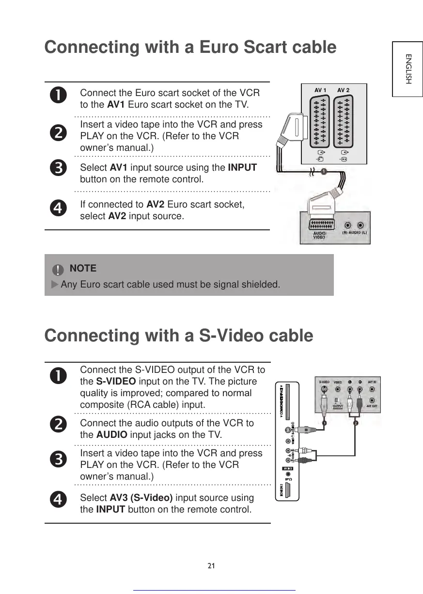 Connect the Euro scart socket of the VCR