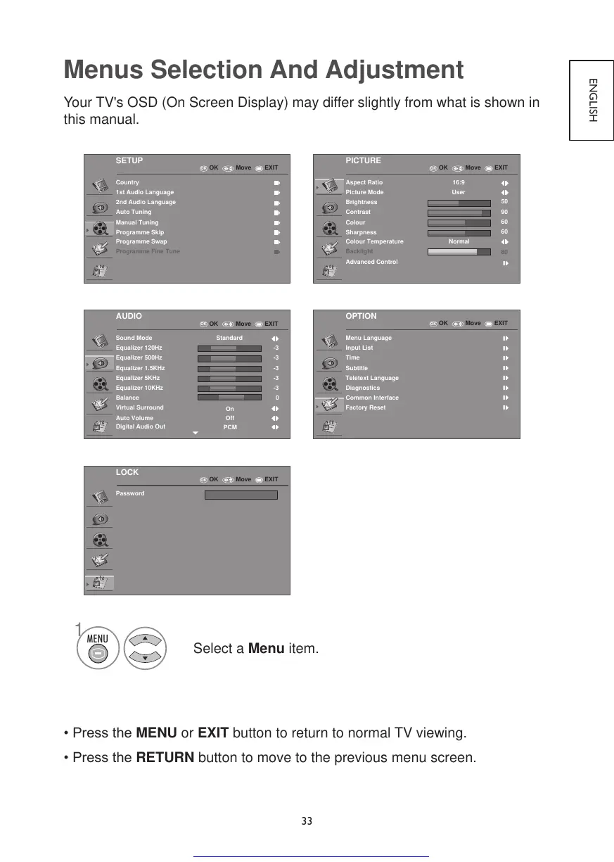 Your TV's OSD (On Screen Display) may differ slightly from what is shown in