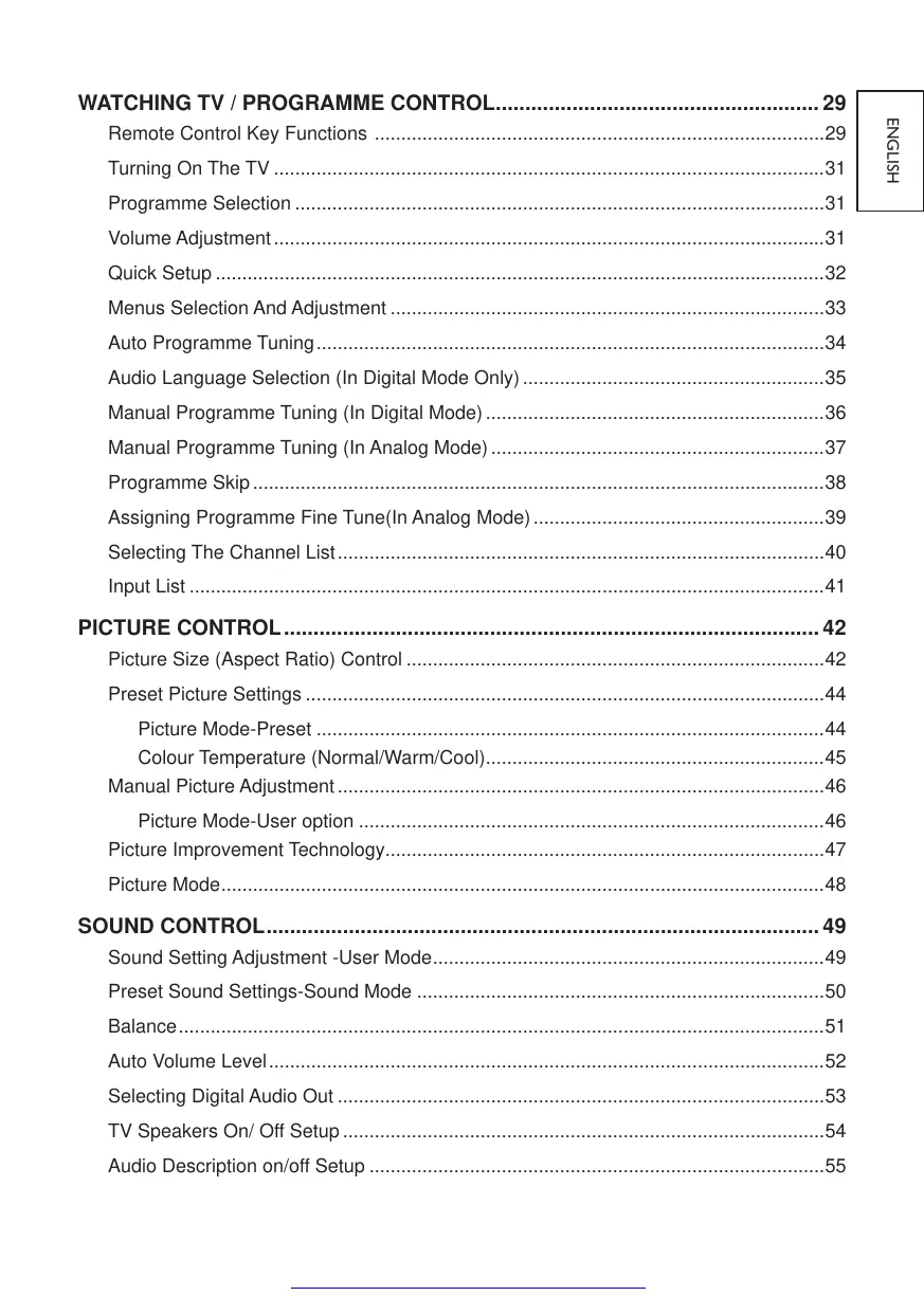Assigning Programme Fine Tune(In Analog Mode) .......................................................39