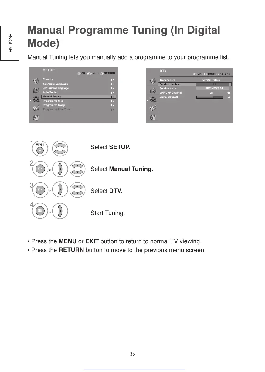 Manual Programme Tuning (In Digital