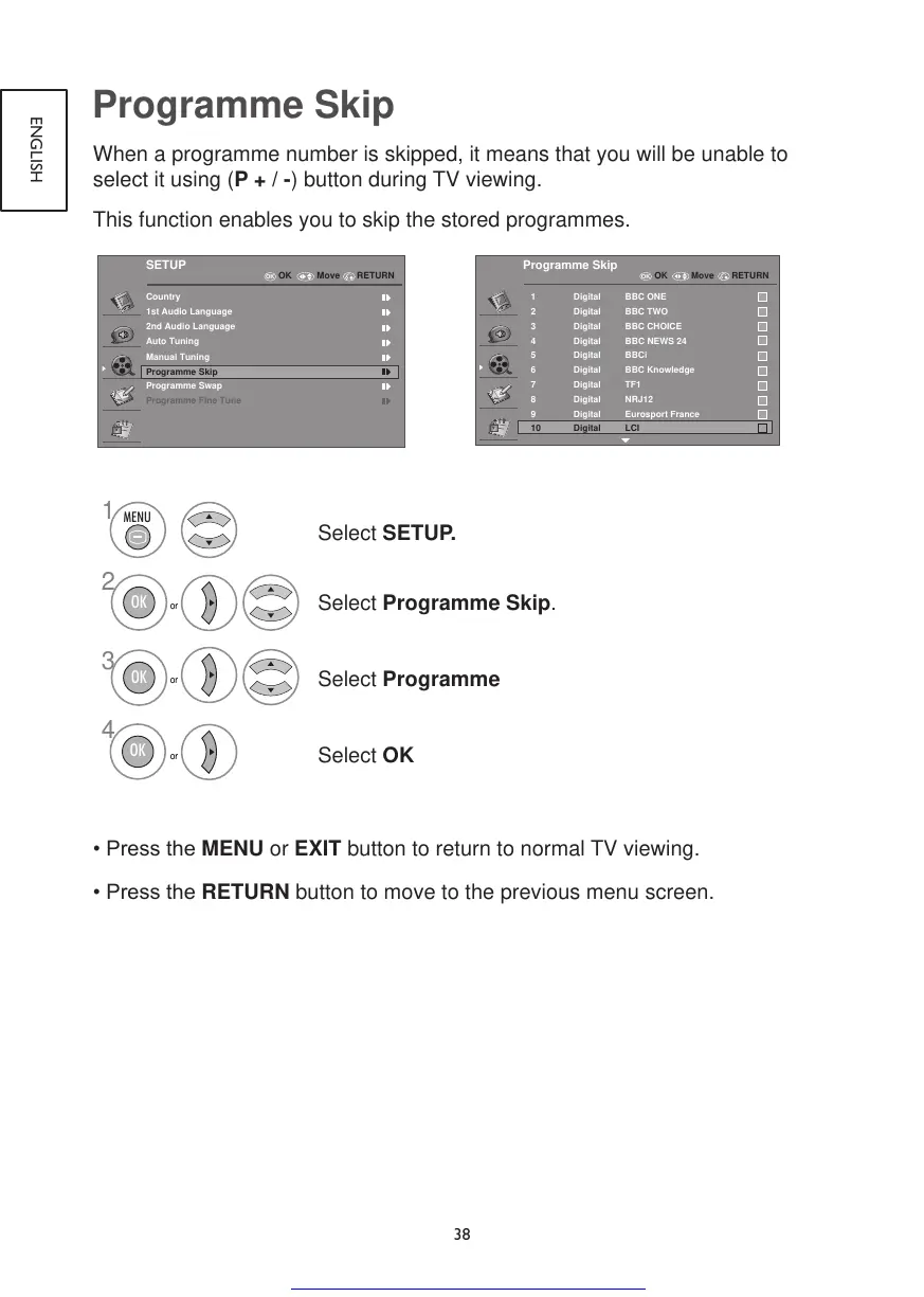 •PresstheMENU or EXIT button to return to normal TV viewing.