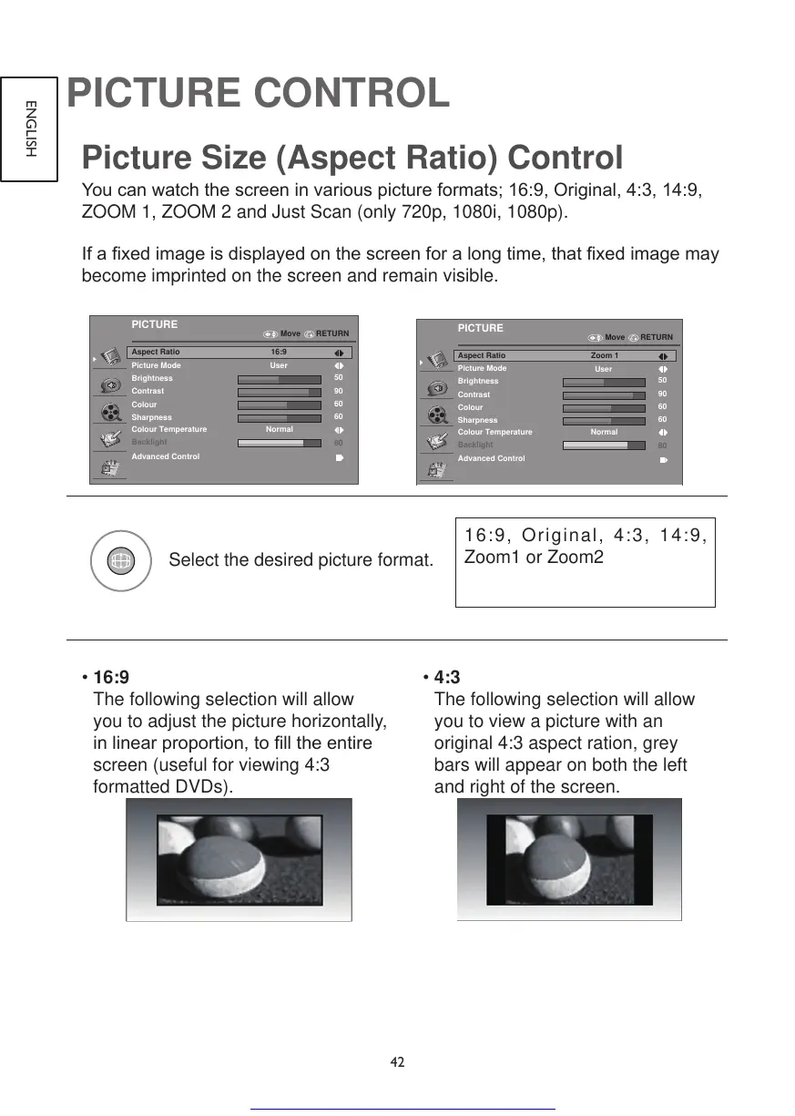 Youcanwatchthescreeninvariouspictureformats;16:9,Original,4:3,14:9,