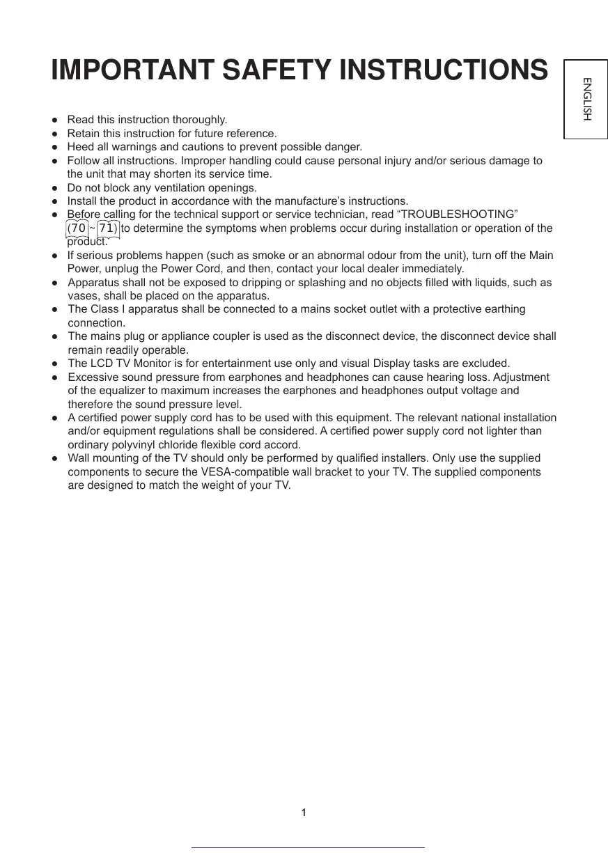 ● TheLCDTVMonitorisforentertainmentuseonlyandvisualDisplaytasksareexcluded.