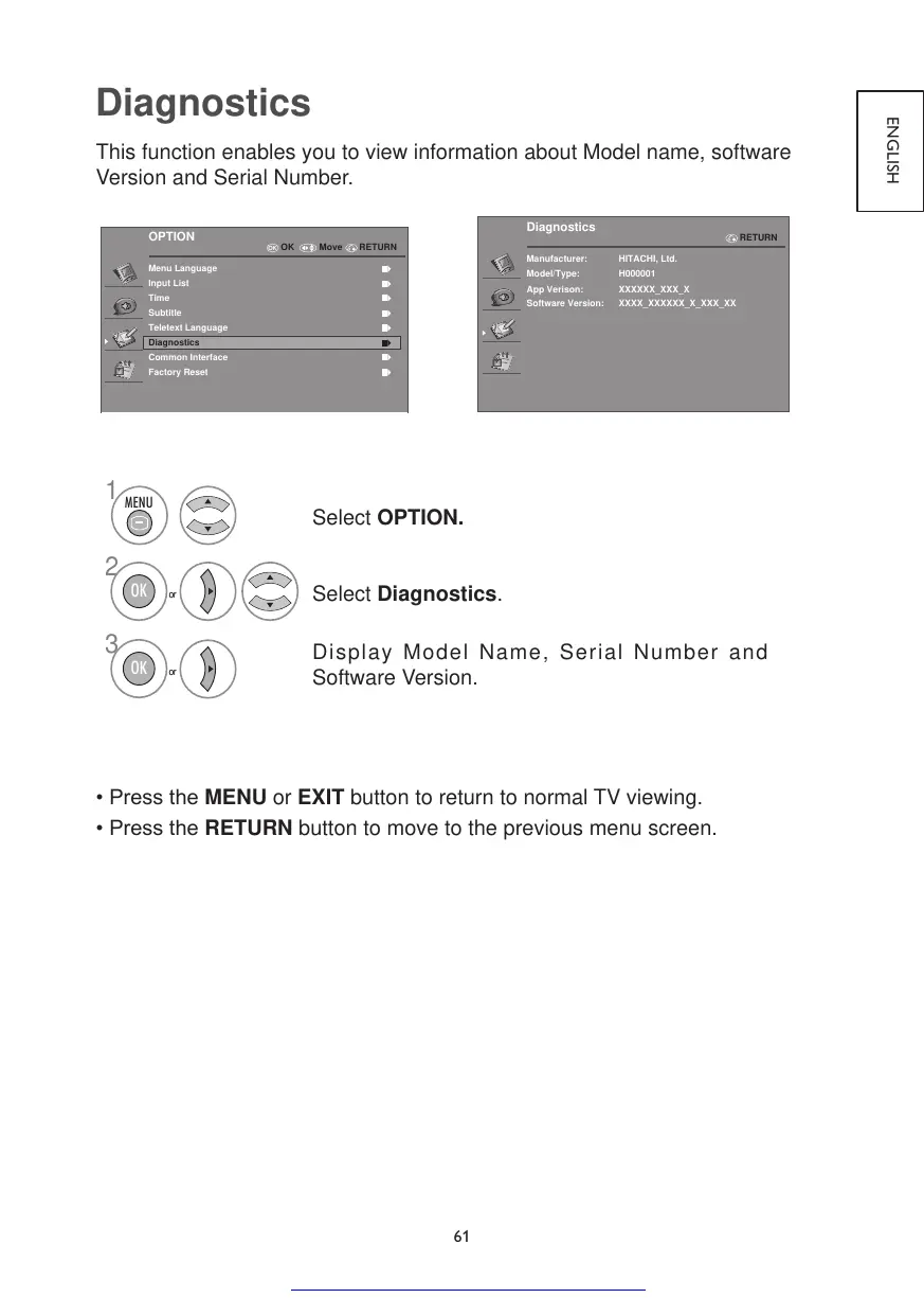 •PresstheMENU or EXIT button to return to normal TV viewing.