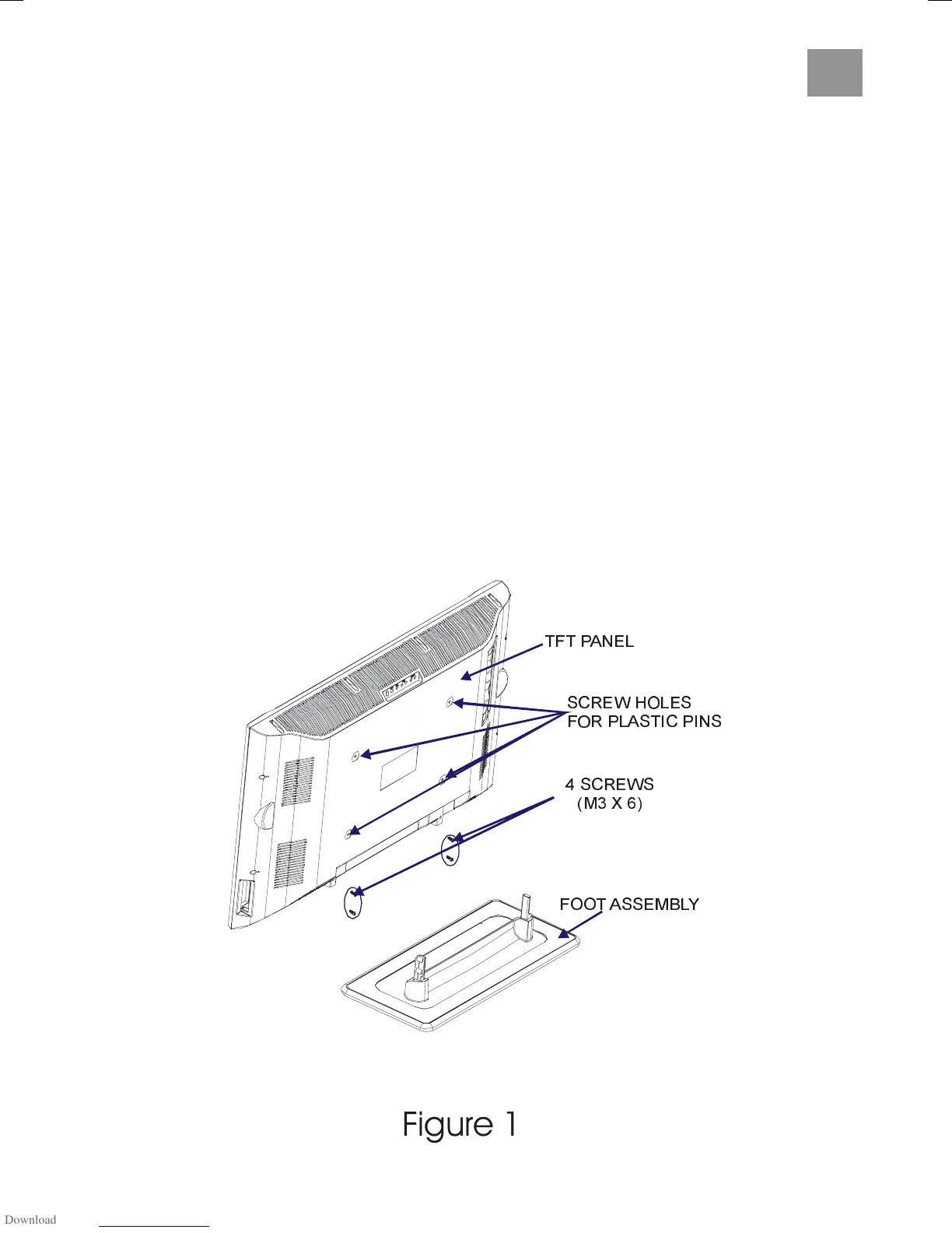 1- To install the TFT TV on the wall, first of all, foot assembly should be removed. (Figure 1).