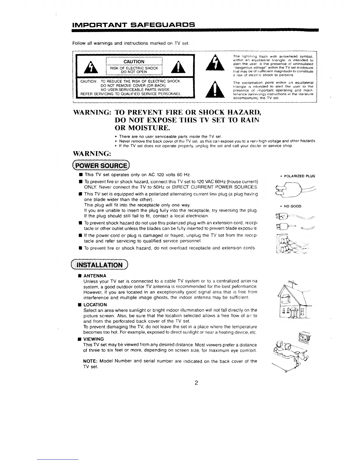 • This TV set operates only on AC 120 volts 60 Hz.