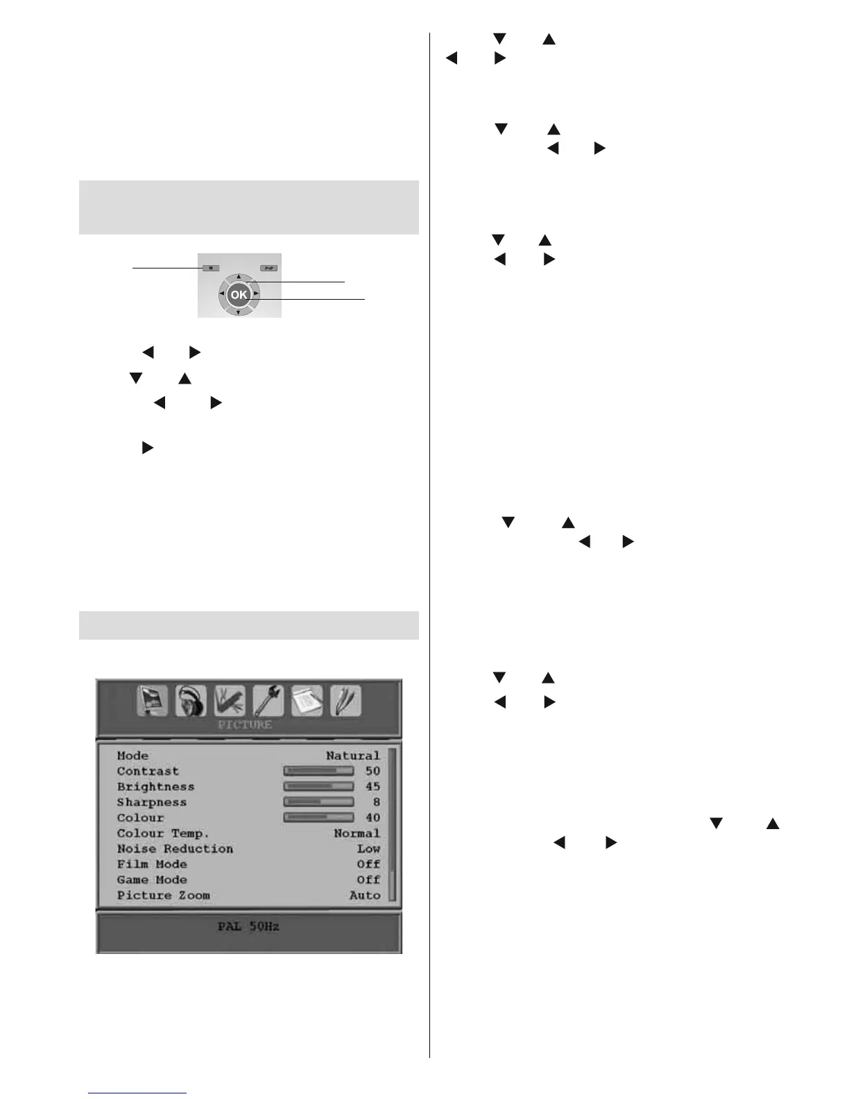 of the analogue TV menu system. To select options