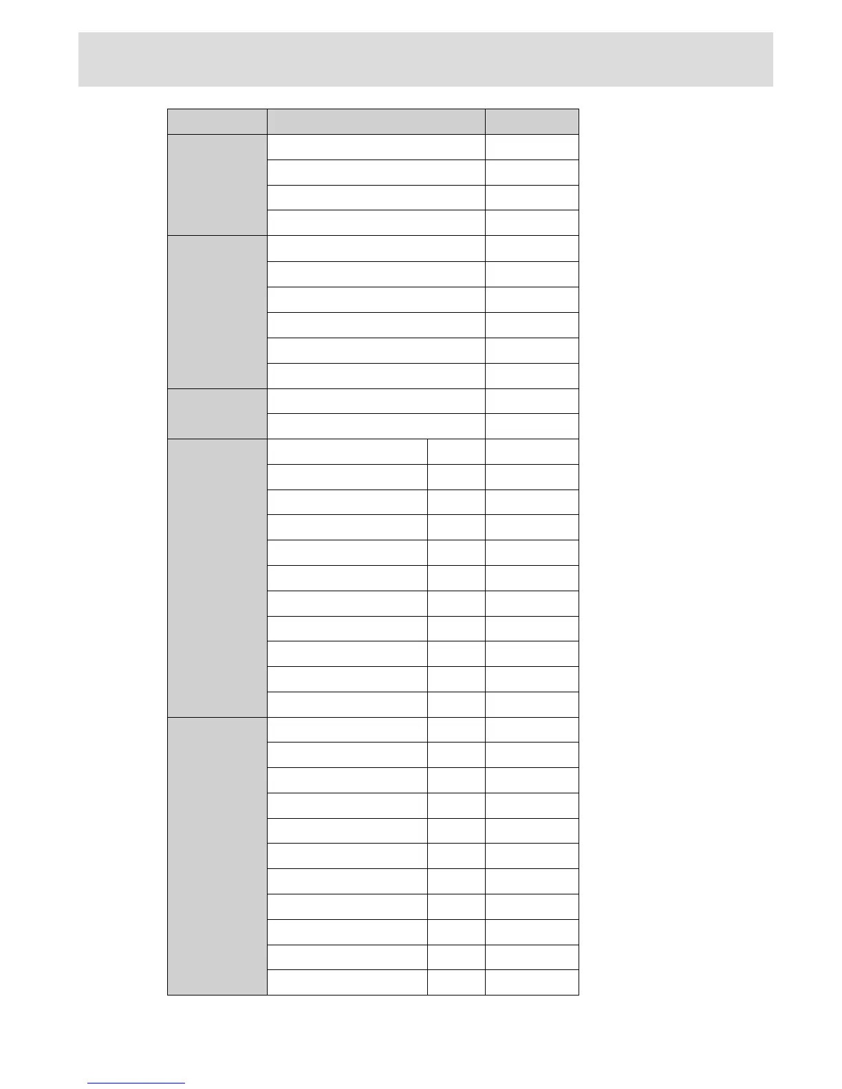 (X: Not Available, O: Available)