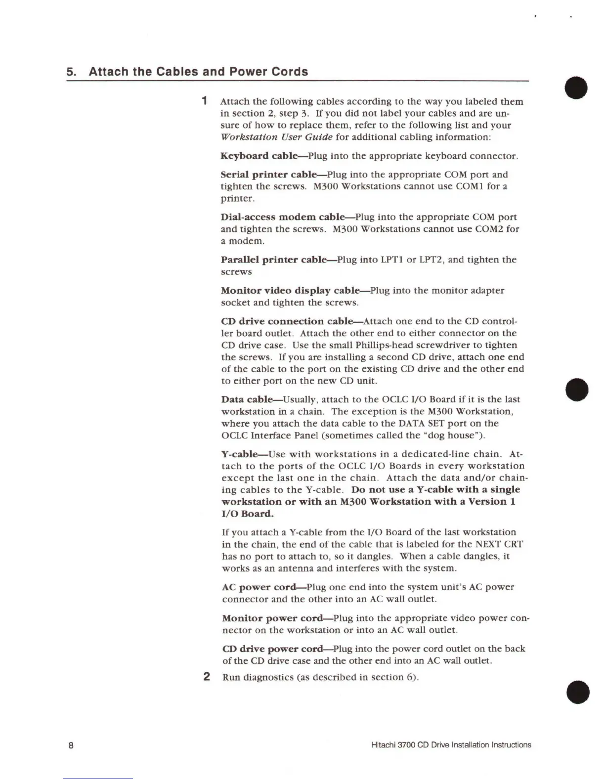 Hitachi 3700 - 5. Attach the Cables and Power Cords