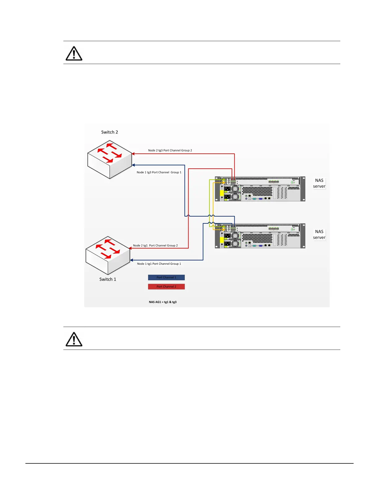clustered NAS servers are connected to a pair of switches configured with one