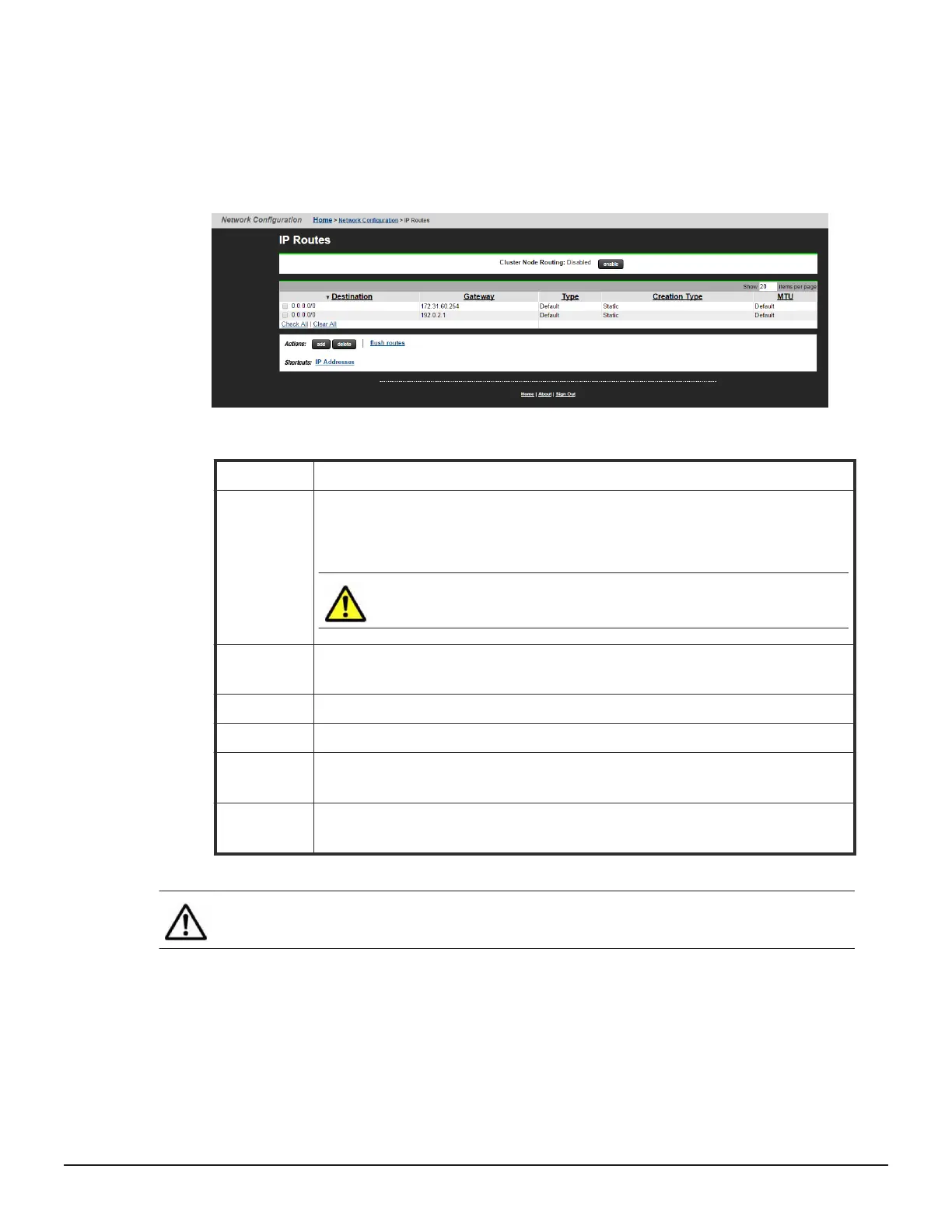 o view the existing IP routes, navigate to Network Configuration > IP