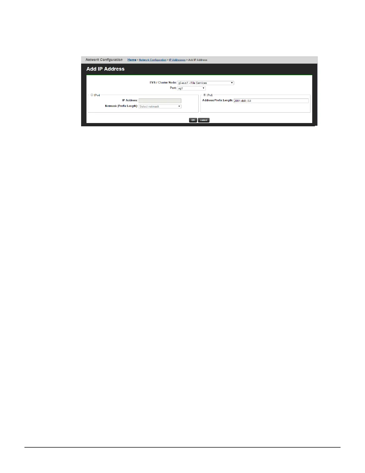 For example, the Administrator can set an IPv6 address for ag1 on the file-