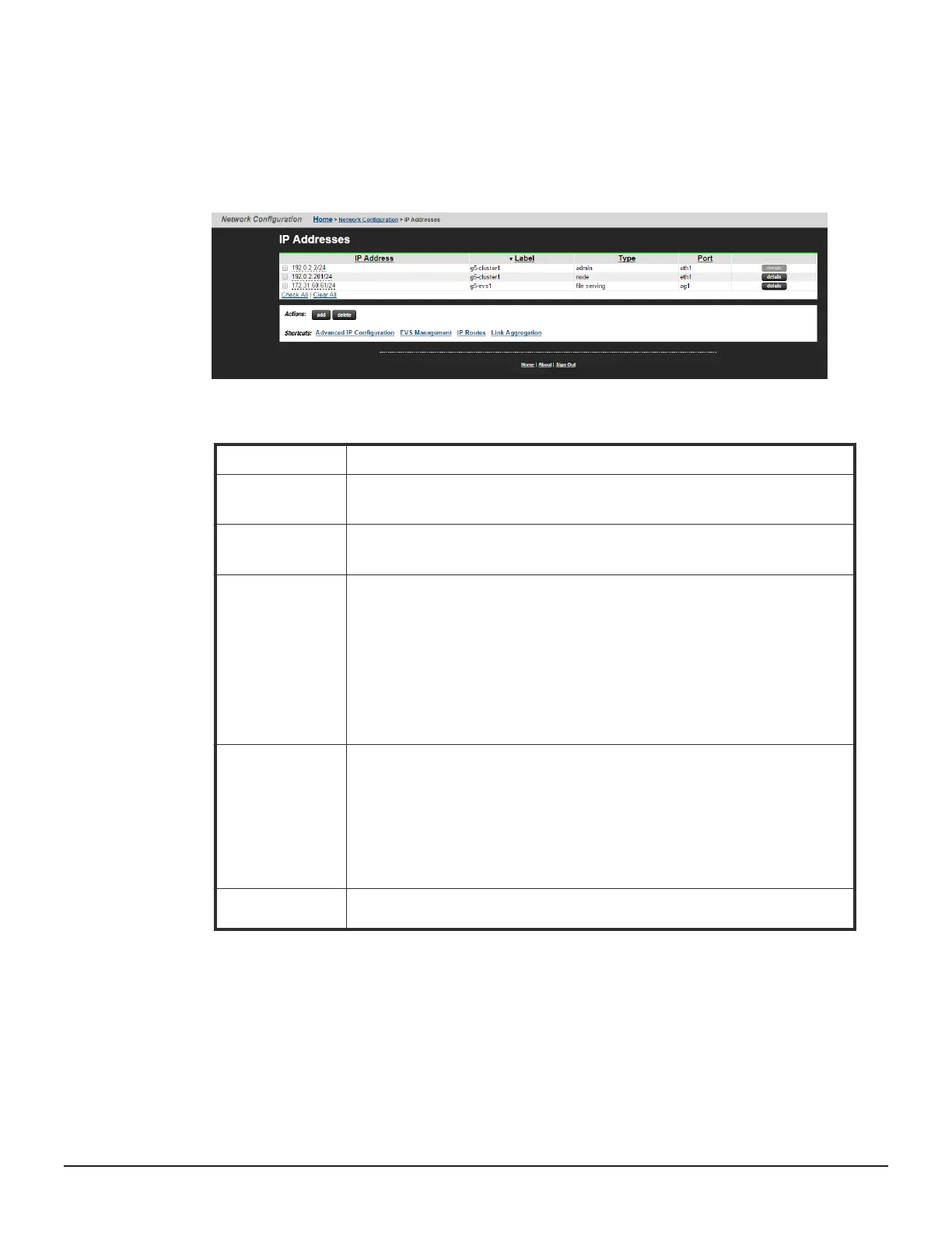 IP Addresses This field contains the IP address for the Admin and File services or for server/