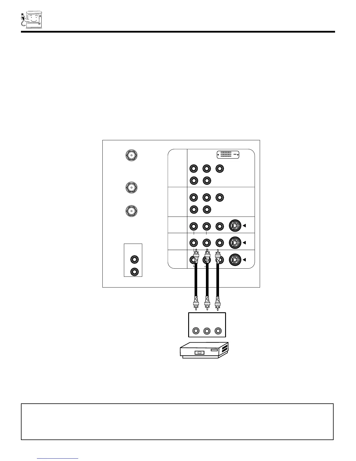 NOTES: 1. Completely insert the connection cord plugs when connecting to rear panel jacks. The picture and sound that is