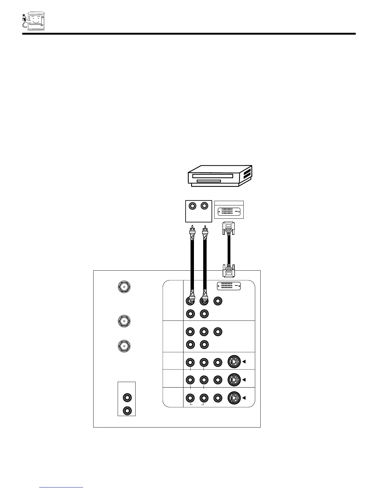 1. Connect the DVI connection cable from the output of the HDTV set top box or DVD player to the DVI-HDTV input as shown on