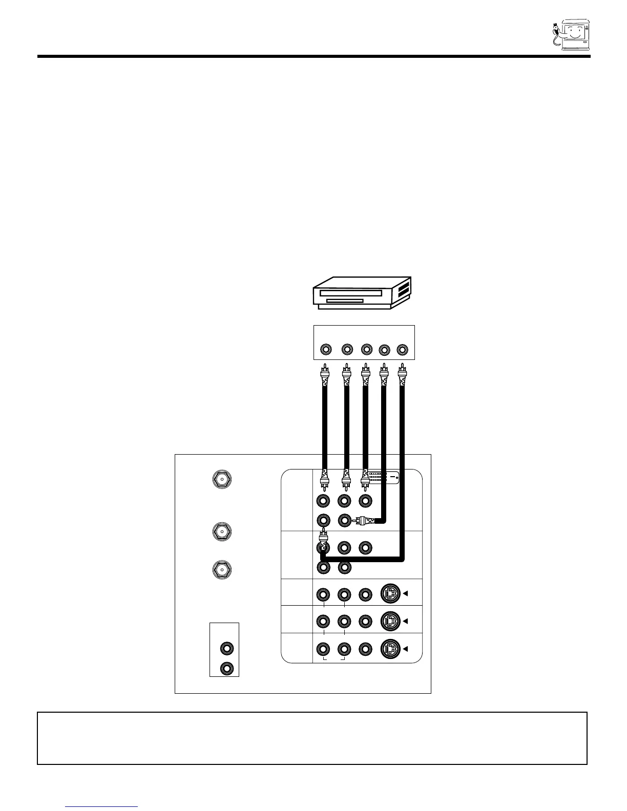 NOTE: 1. Completely insert the connection cord plugs when connecting to rear panel jacks. The picture and sound that is