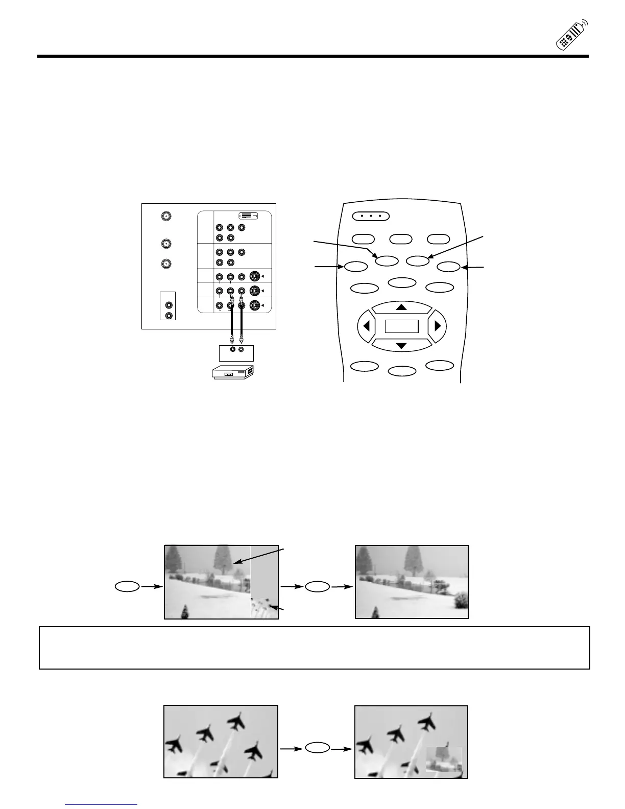 last selection of the PIP mode. Press the PIP button again to remove the sub-picture from the screen. Use the PIP CH button to