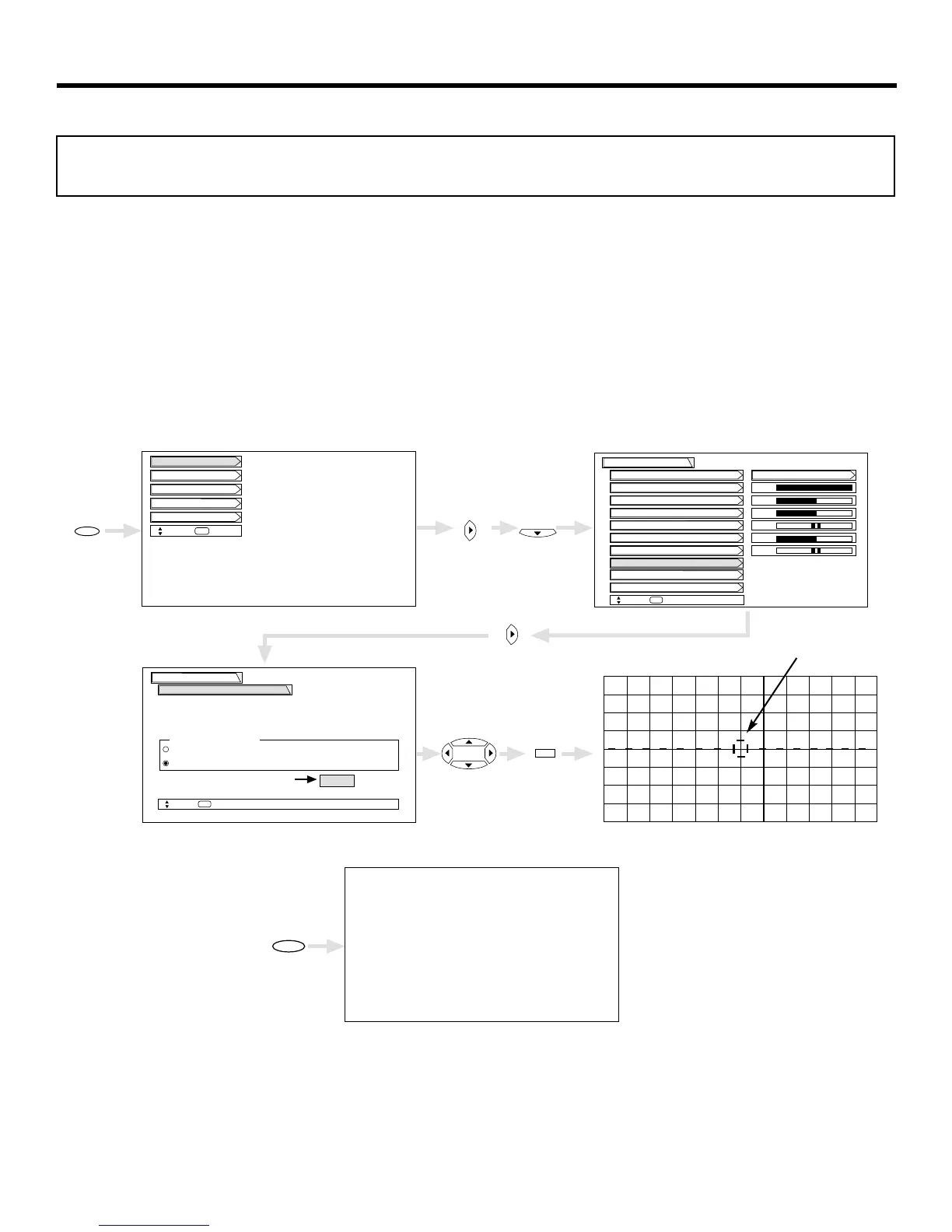 Using the Remote Control, select VIDEO-MAGIC FOCUS-MANUAL ADJUSTMENT MODE-START to access convergence crosshatch