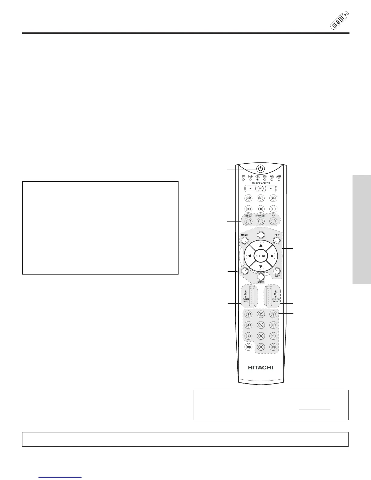 NOTE: Refer to instruction manual of the Cable Box for operation of the buttons exclusively for the Cable Box.
