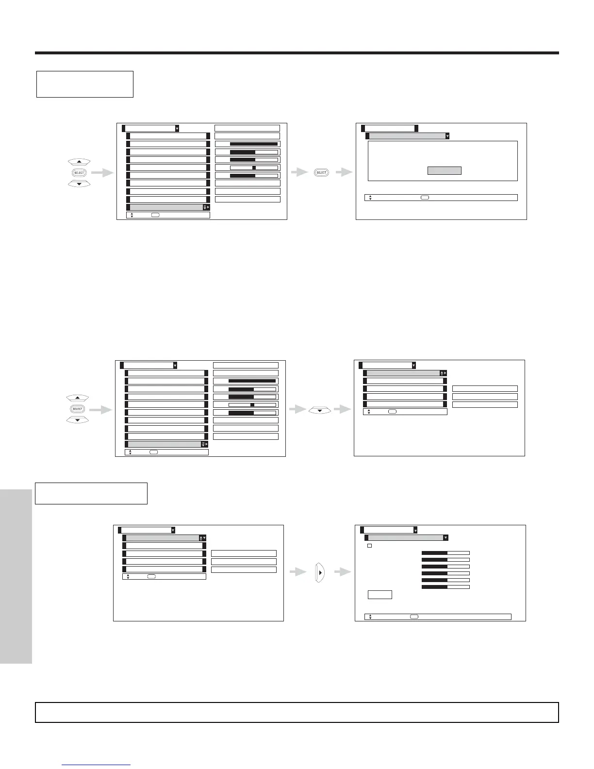 video program being viewed. If RESET is selected, only the selected Input will reset to the initial conditions as explained above.