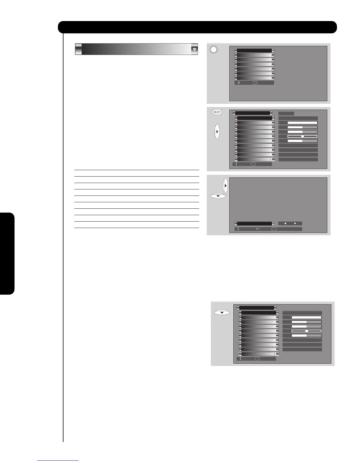 1. Use the CURSOR buttons or to highlight the function to be adjusted.