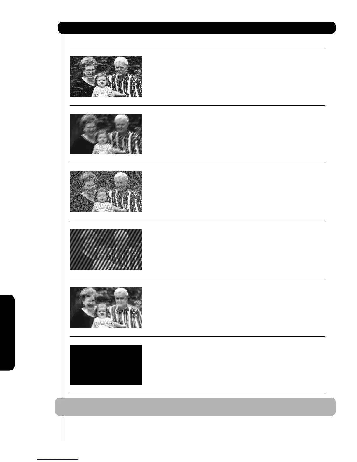 Black spots or horizontal streaks may appear, picture may flutter or drift.