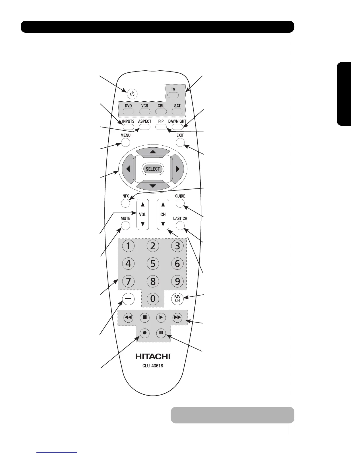 In addition to controlling all of the functions on your HITACHI Projection TV, the new remote control is designed to