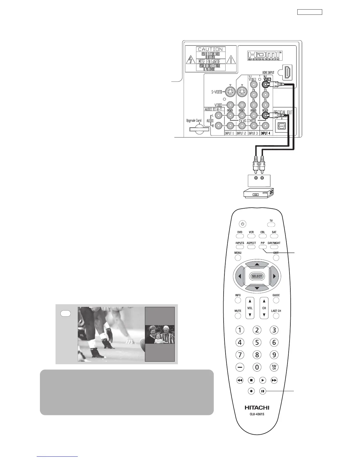 PIP MODE. Only one INPUT (1-5) and one antenna