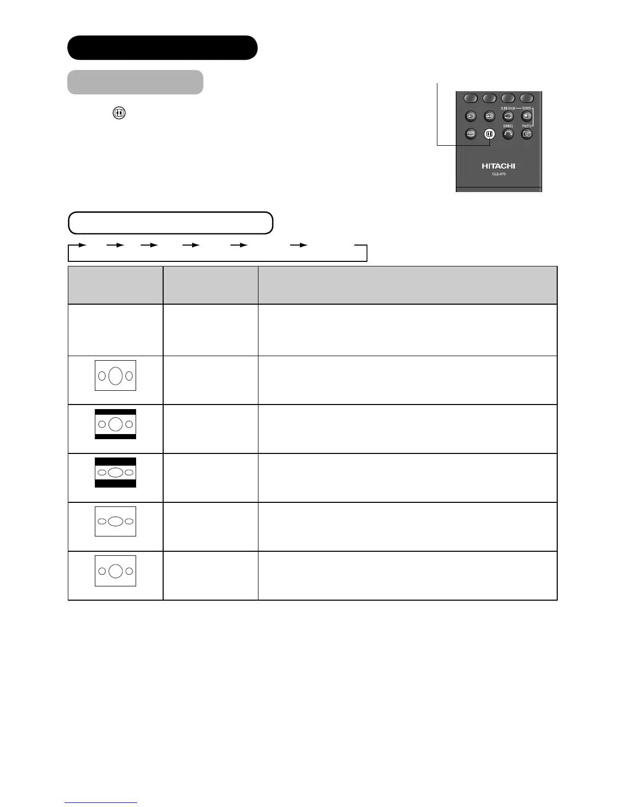 Each time button of the remote control is pressed, the screen display size is