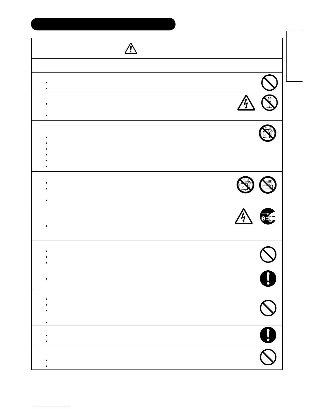 Continuing use of the product with above condition may cause fi re or electrical shock.