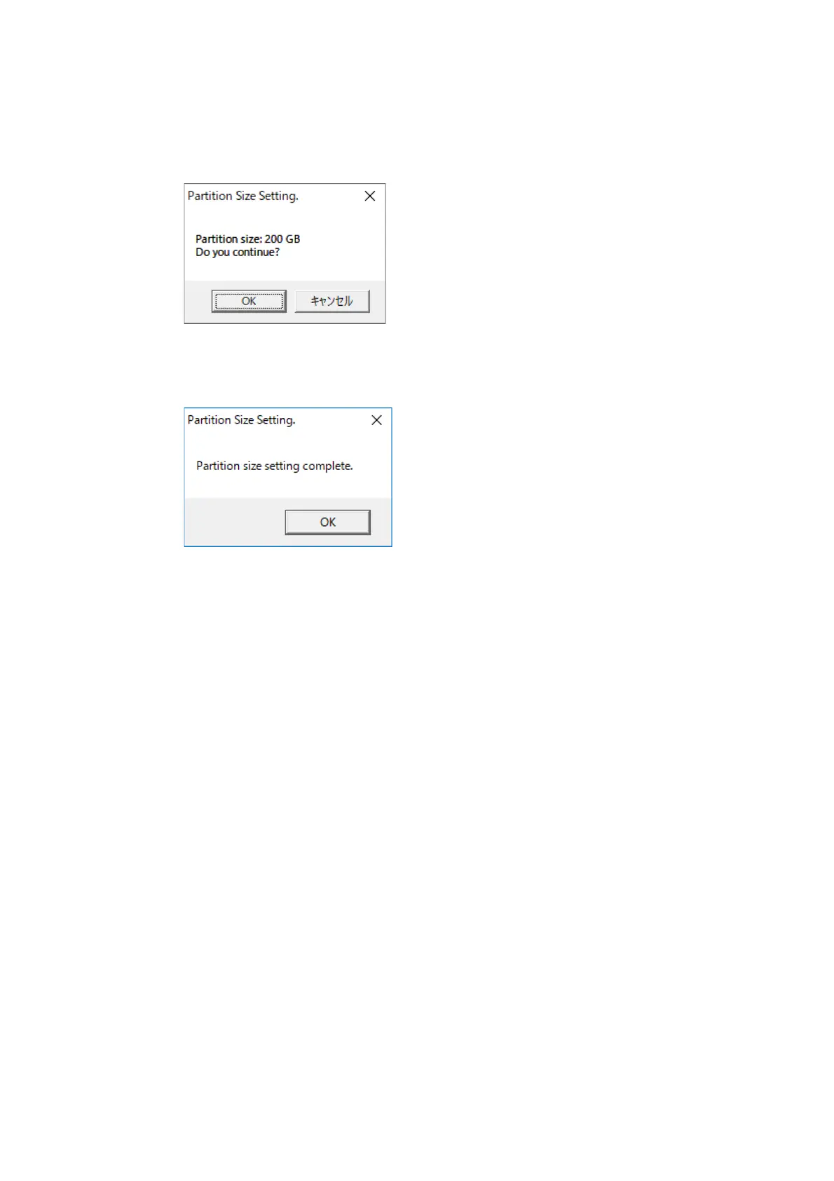 8. When the partition capacity setting is successful, the following message is displayed.