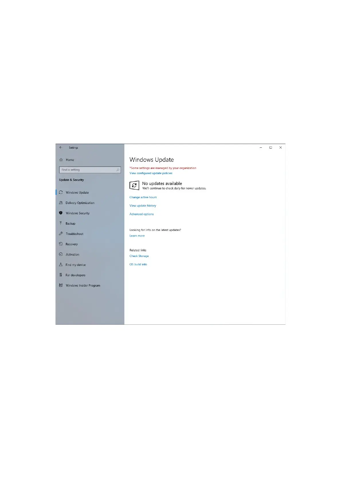 2. Click Update & security. The Windows Update window appears.