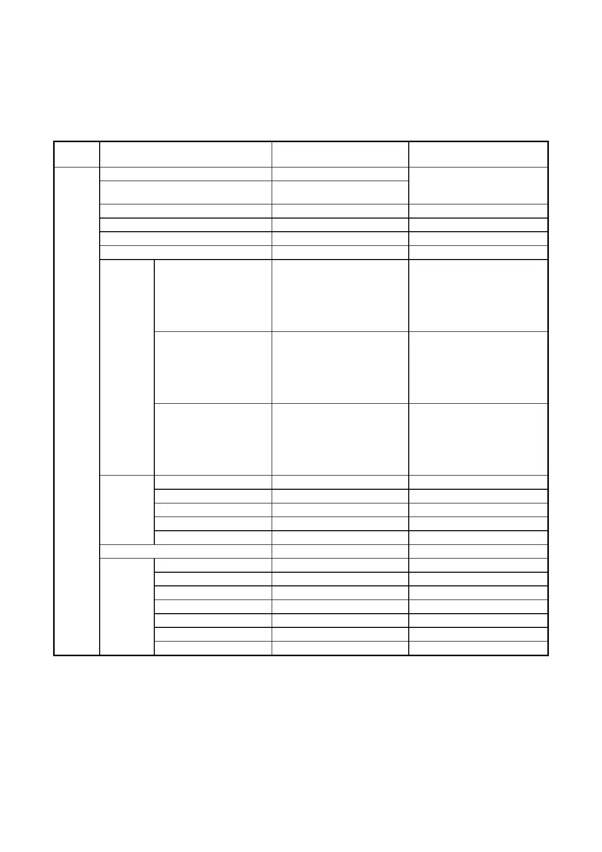 The following tables show the details of the items you can set up in each menu.