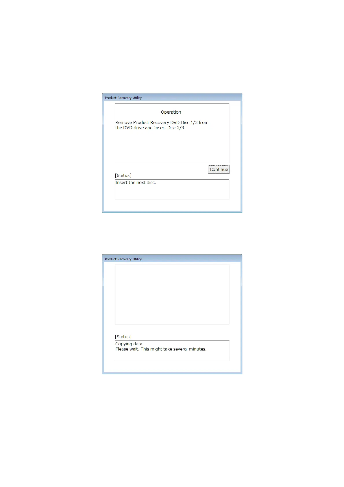 10. If the number of recovery DVDs is multiple, repeat steps8 and 9.