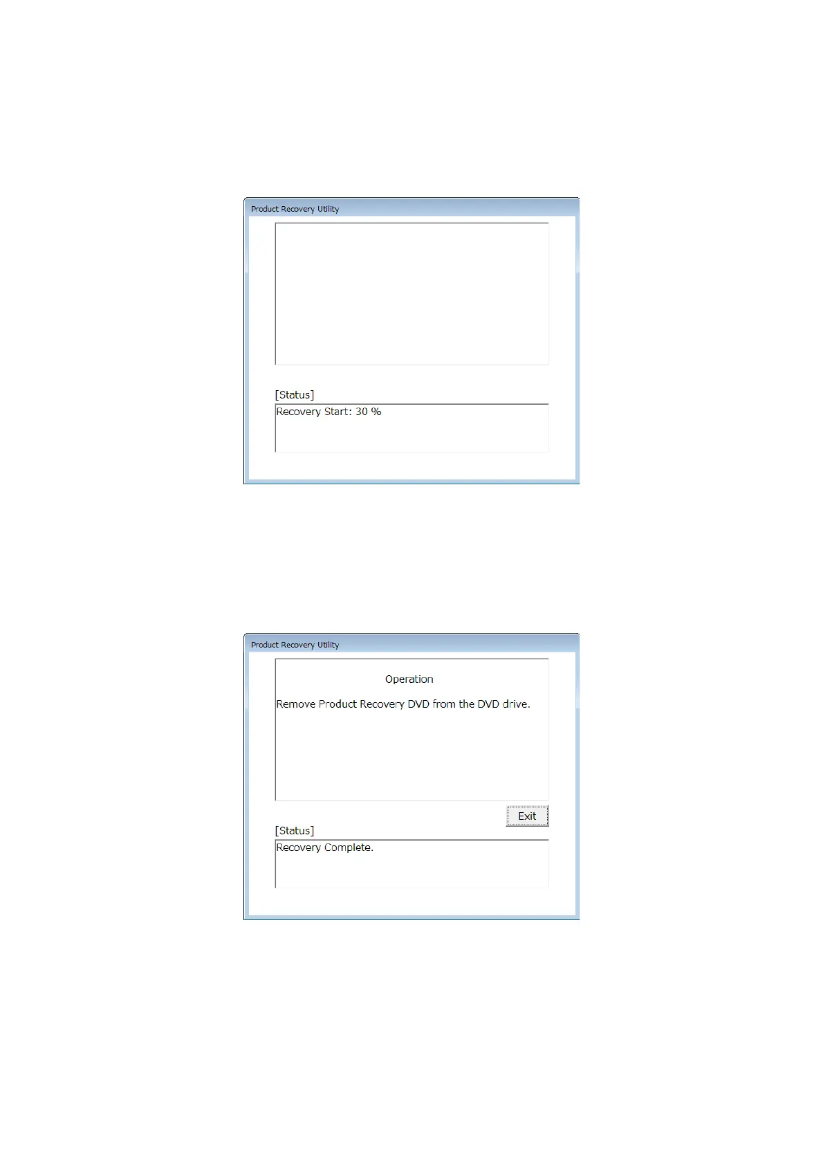 recovery DVD is fully completed, “Recovery Complete.” is displayed in the [Status]