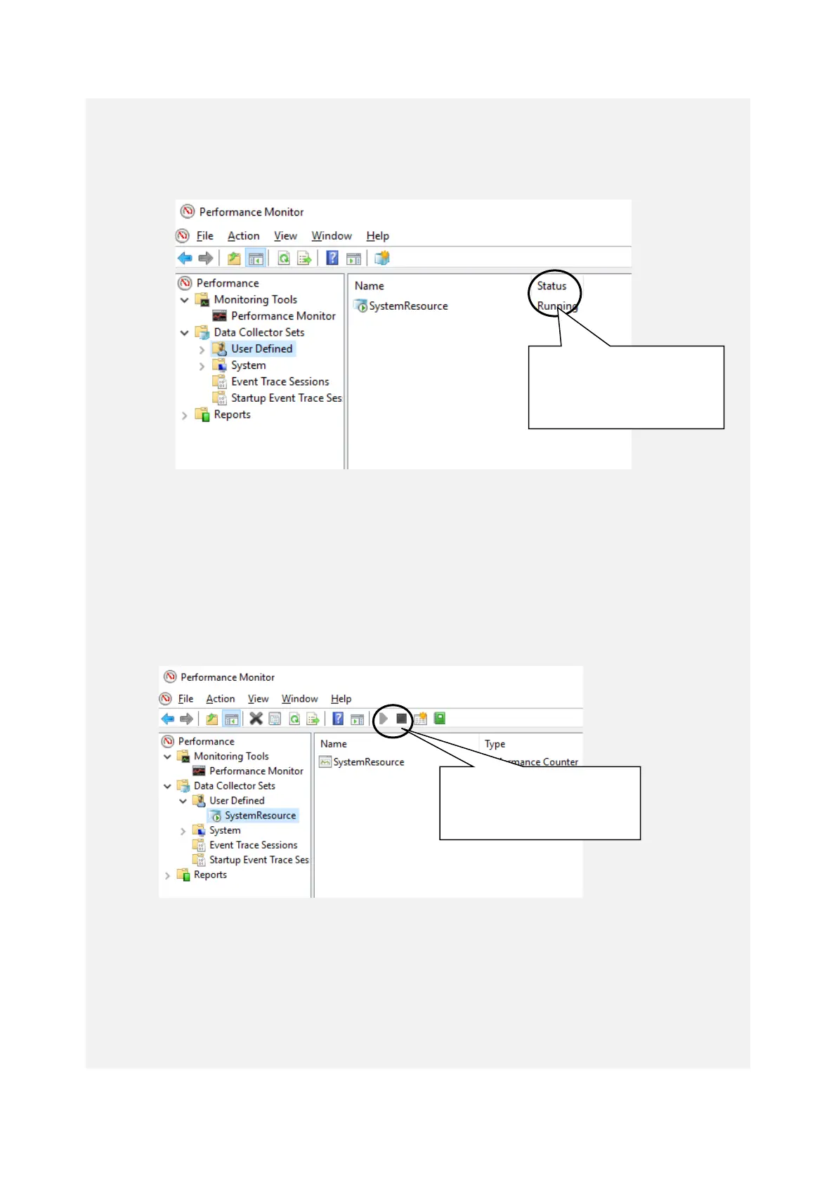 performance counter data, sometimes you cannot start or stop collecting