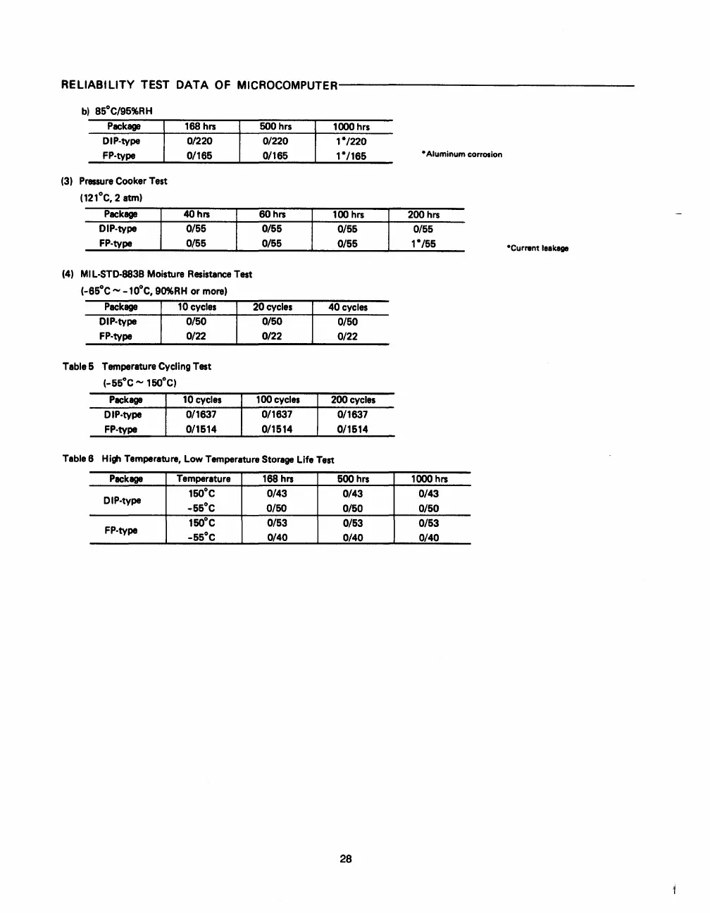 RELIABILITY TEST DATA