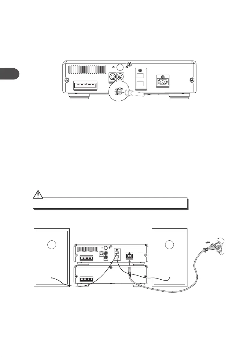 Connect one end of the aerial cable (included) to the DAB socket at the rear of the unit.