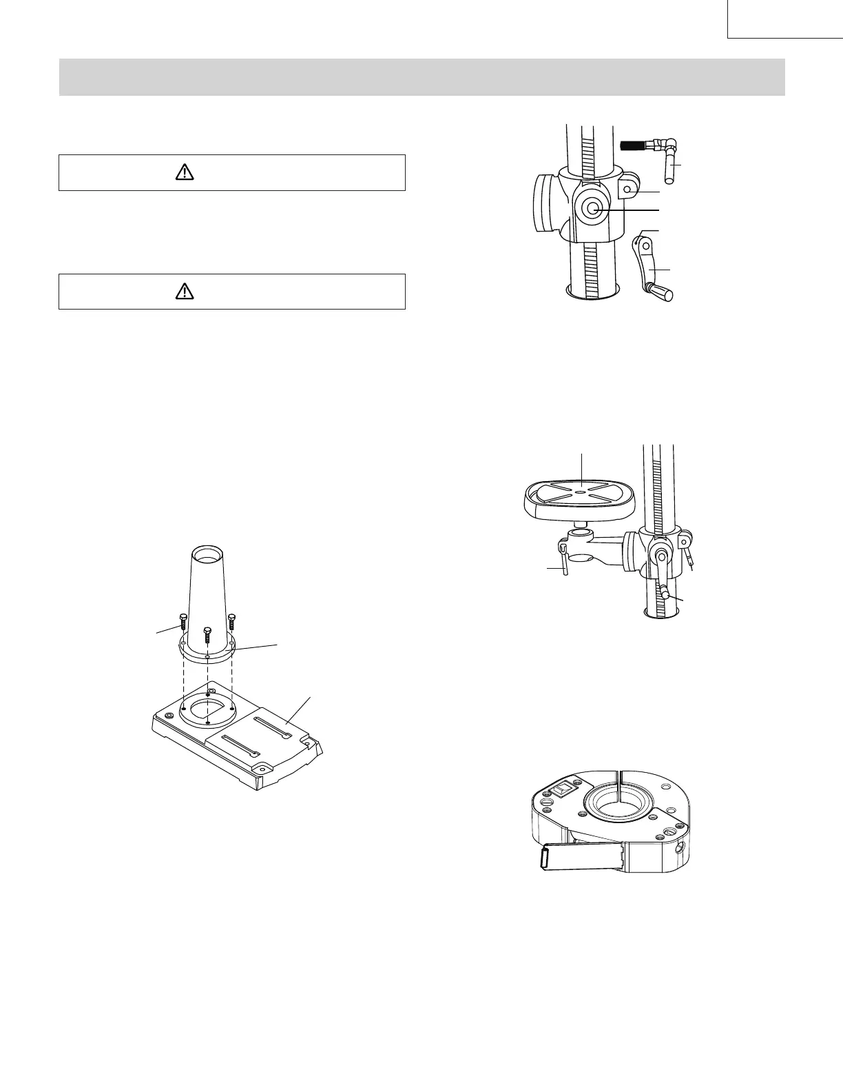 2. Place the column (2) on the base, aligning the holes