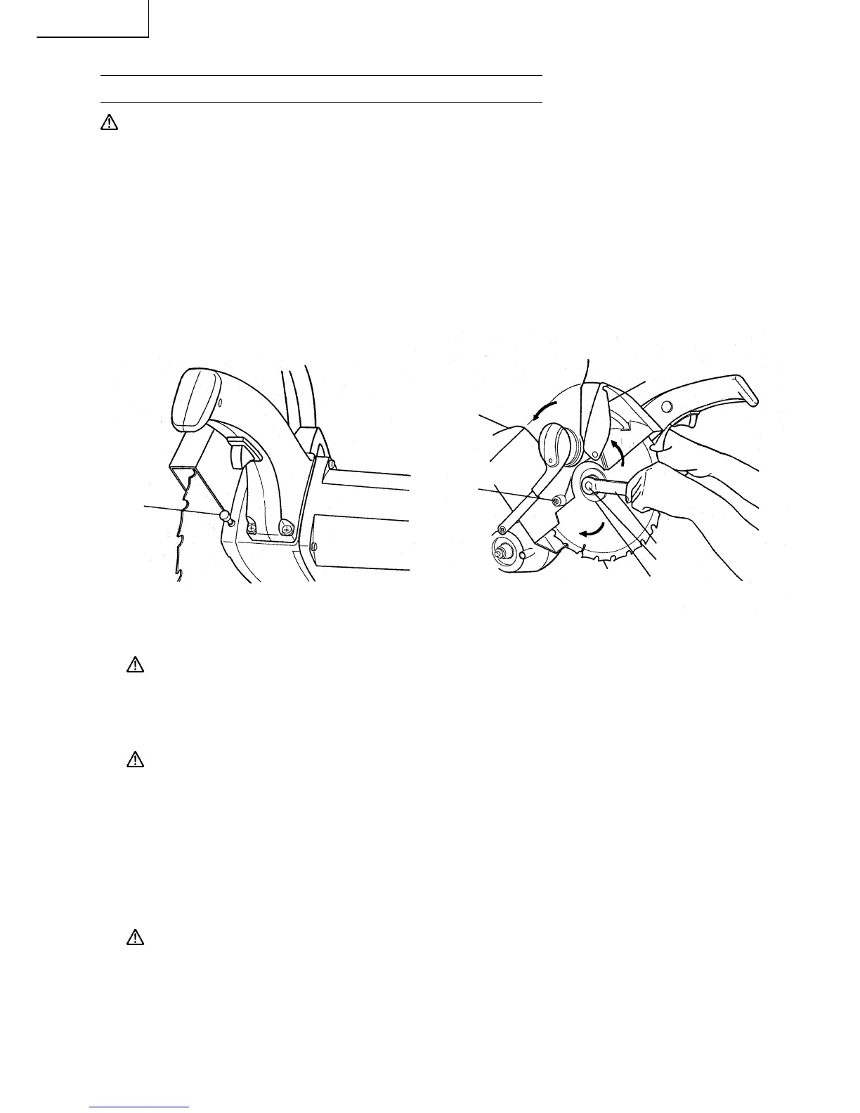 WARNING: When mounting the saw blade, confirm that the rotation indicator mark on the saw